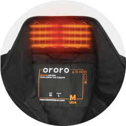 - 4 Kohlenstoff-Nanoröhren-Heizelemente erzeugen Wärme in den Kernbereichen des Körpers (linke und rechte Tasche, Kragen, oberer Rücken).