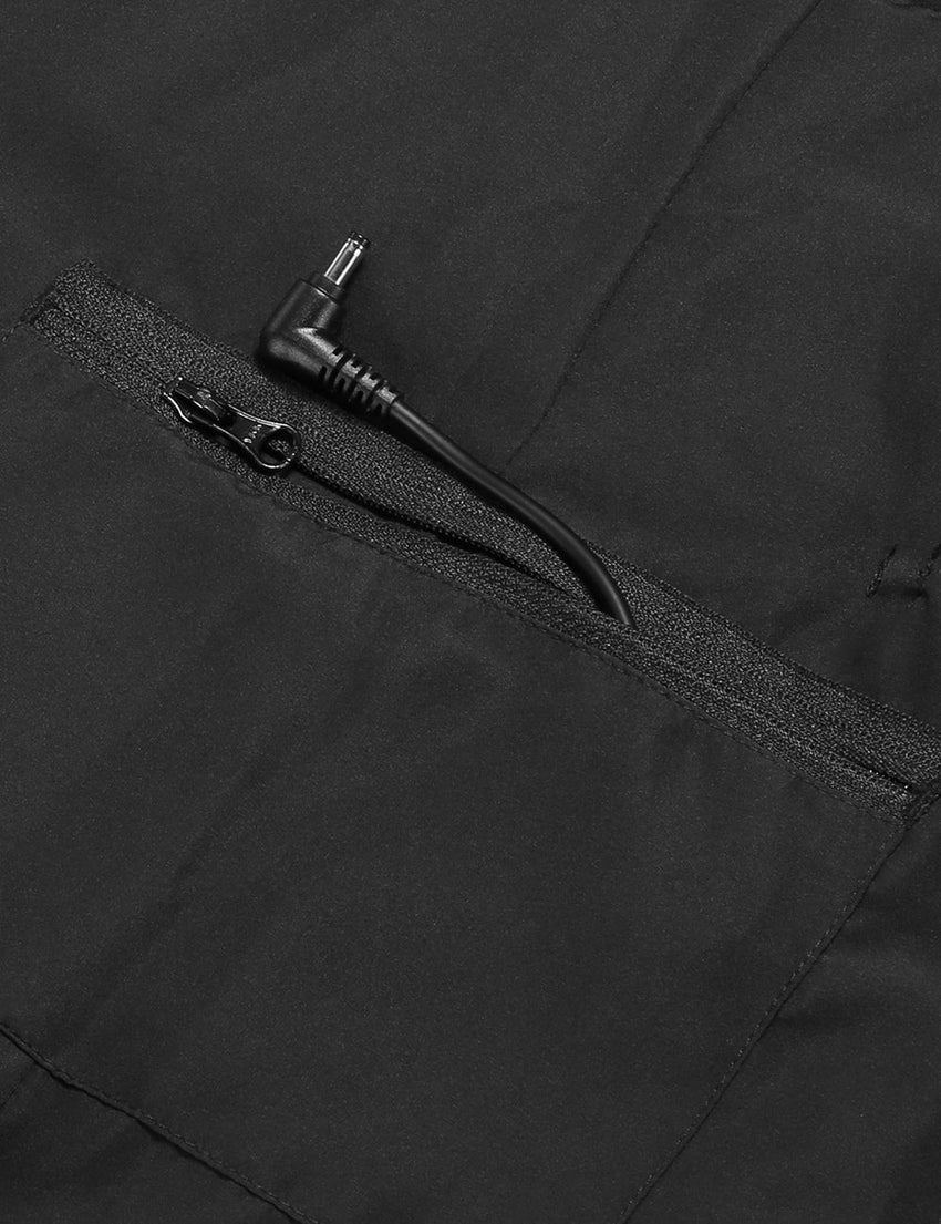 - 4 Kohlefaser-Heizelemente erzeugen Wärme in den Kernbereichen des Körpers (linke und rechte Tasche, Kragen, mittlerer Rücken).