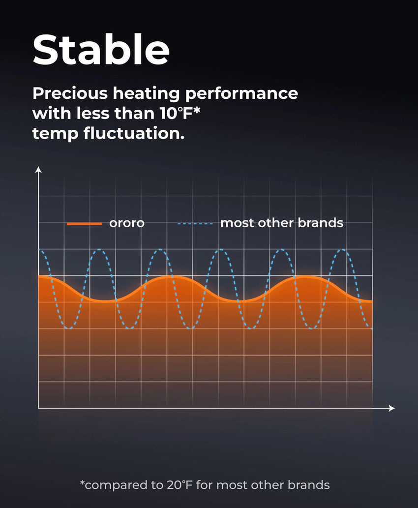 - Bis zu 10 Arbeitsstunden (3 Stunden bei hoher Heizeinstellung, 6 Stunden bei mittlerer, 10 Stunden bei niedriger).