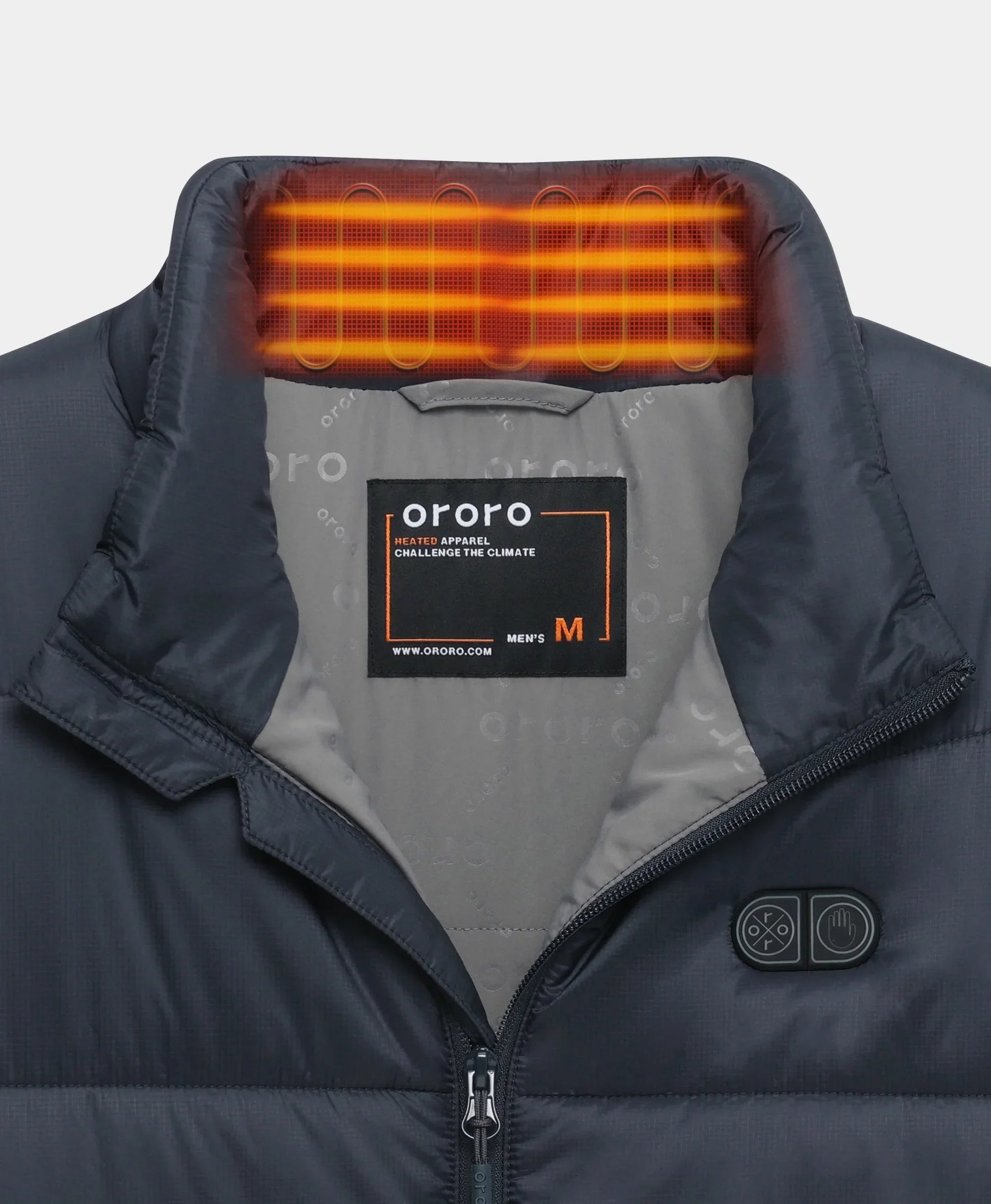 7 Heating zones: Left & Right Pockets, Left & Right Shoulder, Mid-back, Lower back, Collar